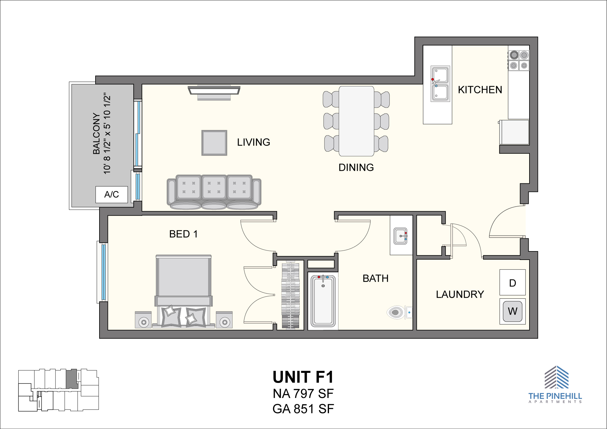 You'll find that our thoughtfully designed one-bedroom, one-bedroom plus Den, and two-bedroom apartment styles emphasize open, flexible spaces, allowing you to easily tailor the apartment's functionality to your sense of style. Here, at The Pinehill Apartments, the highest quality modern materials work together harmoniously to create a sleek and elegant look and feel throughout. As a result, you're sure to find an apartment that perfectly suits your unique wants and needs.